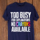 Too Busy for Explanations, No Crayons Available T-Shirt