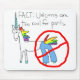 Unicorn with rainbow hair, wearing blue pants. His pants have a big red slash through them. Above him are the words: "Fact: Unicorns are too cool for pants."