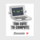 Too Cute To Compute Funny Laptop Computer Pun Sticker