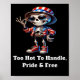Show off your bold American spirit with this eye-catching patriotic skeleton design featuring the quote "Too Hot to Handle, Proud & Free." This unique artwork blends confidence with patriotic pride, showcasing a badass skeleton. Freedom never goes out of style.