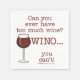 A snarky slogan sure to be loved by any fun loving wine drinker. Glass of wine is seen with the saying, “Can you ever have too much wine? WINO (Why no) you can’t!” The border can be changed just by picking another color or white. Original design by Christie Black of Creations from the Heart.