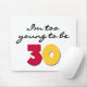 I'm too young to be 30! If the 30th birthday seemed to creep up on you, if you refuse to get any older, at least in spirit, or if you're looking for a great gift for the person turning 30 years old that can be used the entire year you'll love this black, red, and yellow text design.