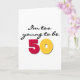 I'm too young to be 50! If the 50th birthday seemed to creep up on you, if you refuse to get any older, at least in spirit, or if you're looking for a great gift for the person turning 50 years old that can be used the entire year you'll love this black, red, and yellow text design.