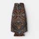 Dark brown tooled leather floral design print.