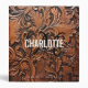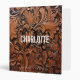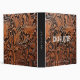 Modern brown 3 ring binder with a black female monogram and white typography on a tooled faux leather background. Personalize with your name, initial on the cover and text on the spine.
