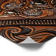 Dark brown tooled leather design.