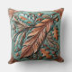 Western Tooled Leather Print with Feathers and Leaves Throw Pillow in turquoise and copper
