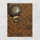 Customize the country and western theme Tooled Leather Saddle Blank Postcard with your own personal message to your cowboy or cowgirl. This charming custom ranch theme card features a digitally enhanced farm photograph of a brown horse saddle with an intricate tooled leather floral and leaf design.