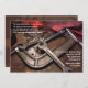 A masculine invitation to celebrate a birthday or retirement of a hard-working guy. The card features wrenches, screws, and a vice. The card is easy to customize with your wording, font, font color and choice of six paper types.
