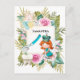 A cute and adorable illustration of a fairy princess wearing a faux teal gold crown and a pretty blue dress is beaming broadly and is holding floss wrapped around a shiny white tooth. A smiling toothbrush is flying above the tooth about to brush it and another blonde haired fairy appears at the top left holding a faux gold coin imprinted with a tooth. They are framed by boho dry leaves and pretty pink rose flowers set against a white background that may be changed to any color of your choice. A template for your daughter; granddaughter; niece or godchild name appears on the front and the back has templates for your personalized wording. Don't forget to remove the ATTRIBUTION link by clicking it, to remove the Zazzle logo.