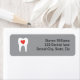 Gray dentist return address label featuring a white tooth silhouette with a red heart symbolizing caring for your teeth. Customizable text. Great for dentists or dental clinics and anyone working with teeth like orthodontists, dental hygienists and assistants. For custom requests please use the store contact link above.