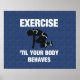 Exercise Til Your Body Behaves slogan with cross-training theme. If you're a man or woman who likes to workout hard, then get this black/white logo for the weightlifting, running, and workout crowd.