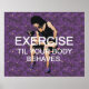 Exercise Til Your Body Behaves slogan with female bodybuilding athlete working out. Great for the girl who loves to go to the gym or health club.