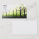 Business card with a closeup photo of the top of an outdoor black iron fence