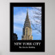 The top of New York City's iconic Chrysler Building against a blue sky with white clouds and bare tree branches