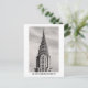 The top of New York City's iconic Chrysler Building is featured in black and white.