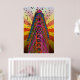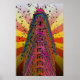 A whimsical, colorful, psychedelic view of the top of the New York City icon, the Flatiron Building. This one displays reddish/orange and yellow rays. It also comes in additional color patterns.