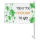 Top o' the morning' to ye! car flag with Irish Shamrock, lucky 4 leaf clover and love hearts in an Irish color palette of green, orange and white. Perfect for St Patrick's Day and a cheerful welcome all year round.