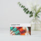A business card template with a 0.6" (15.24mm) white top panel and space for a photo or image underneath. Available with a variety of attractive images or you can add your own image. Company Name and Business type/Quote on the front top panel positioned to the left. The same basic layout is repeated on the reverse side of the card but without the photo. The Name and Job title are on the left of top panel the same as the details on the front of the card. The Address, Telephony, Web and email details are in the lower area aligned to the right in the lower area. The lower area has a flat color background which can also be customised. This template can be used as is or can be further customized. Aside from offering the opportunity to display photos of your products or images relevant to your business The photo area is particularly suitable to a variety of decorative images, photos from nature e.g. details of flowers and trees or even entirely abstract designs and decorative patterns etc. The template also offers plenty of space to add additional logos e.g. in the top right of the top panels.