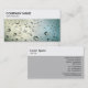 A business card template with a 0.6" (15.24mm) white top panel and space for a photo or image underneath. Available with a variety of attractive images or you can add your own image. Company Name and Business type/Quote on the front top panel positioned to the left. The same basic layout is repeated on the reverse side of the card but without the photo. The Name and Job title are on the left of top panel the same as the details on the front of the card. The Address, Telephony, Web and email details are in the lower area aligned to the right in the lower area. The lower area has a flat color background which can also be customised. This template can be used as is or can be further customized. Aside from offering the opportunity to display photos of your products or images relevant to your business The photo area is particularly suitable to a variety of decorative images, photos from nature e.g. details of flowers and trees or even entirely abstract designs and decorative patterns etc. The template also offers plenty of space to add additional logos e.g. in the top right of the top panels.