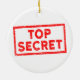Top Secret message from a red rubber ink stamp double sided ceramic Christmas ornament