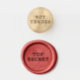 Before the wax hardens, gently and evenly press the wax seal stamp into the melted wax, ensuring it's centered.