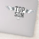 Fab silver effect sticker for your Son. It reads Top Son and features silver pilot's aviator wings, and a silver star. Great for graduate air crew, pilots, those taking flying lessons, plane spotters, naval aviators and anyone who likes aviation themed gifts. Check out more Aviation gifts in our store (Occupations / Aviation Aircraft Pilots).