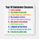 Here are the top ten swimming excuses for not training or swimming hard enough. Great gift for your swimmer or swim coach. The swim coach has heard every one of them!