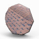 Top view of brown roof shingles with a few autumn leaves on the surface. Selective focus with a blurred background.