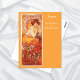 A postcard with an Art Nouveau illustration by Alphonse Mucha (1860-1939), titled Topaz. A portrait of a fashionable woman dressed in an orange gown. Part of the Precious Stones Series from 1900.