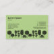 A modern business card with an attractive original motif consisting of seven hand drawn stylized topiary style tree or shrubs. The company details are on the front with name and contact details on the reverse side with an extended version of the front motif along the bottom.Suitable for a variety of businesses. Ready to be customized. The background colors are also customizable.