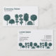A modern business card with an attractive original motif consisting of seven hand drawn stylized topiary style tree or shrubs. The company details are on the front with name and contact details on the reverse side with an extended version of the front motif along the bottom.Suitable for a variety of businesses. Ready to be customized. The background colors are also customizable.