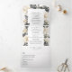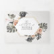 A tropical chic and minimalist design featuring an illustration of beach palm and banana leaves with golden touches. This all-in-one sustainable invitation would save you money, no need to include RSVP envelopes, your guests will cut the last panel and mail it back to you as a postcard.