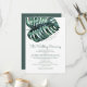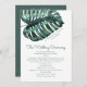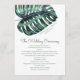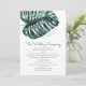 One giant tropical monstera leaf on a chic wedding program template perfect for a modern destination wedding, beach wedding, or green tropical island theme wedding.