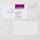 The text elements are arranged in two columns arranged right and left around a center aligned space. The design can accommodate most normal business card entries, however excessively long text lines are best avoided in order to maintain the balance of the design. The reverse of the card has been left blank, which can be useful for jotting notes or can be further customized.