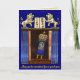 A High Holiday card w/ a traditional scene of the Torah inside an opened Ark, topped by 2 lions holding tablets w/ the Ten Commandments - is treated in a unique & beautiful manner by digital artist, Leslie Sigal Javorek. Both cover & inside text are customizable (or just keep the default).