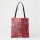 Tote bag featuring floral artwork - Torch Ginger Lily, spectacular red flowers with white outlines on their petals. Exotic tropical plant from South Asia - Malaysia and Philippines. Floral art, botanical sketch, mixed media - tissue paper collage, ink and gel pen.
