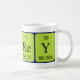 Torey spelled out as T O Re Y (Tritium Oxygen Rhenium Yttrium) on a mug for the scientist in you.