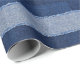 Destroyed torn denim blue jeans fabric frame on blue jeans background. Worn Jeans Casual Double Color patch Denim.