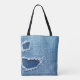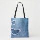 Torn denim fabric texture, blue hues. tote bag