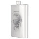 The product is a good size and came exactly as it was pictured. The lid is not attached to the flask, which could be dangerous on drunken nights... The print came out surprisingly well and looks very sharp. Would definitely recommend.