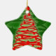 Watch the stars go around in this decorative ornament with a red tornado christmas tree spinning the star ornaments around with a green background with a dark green pattern in it.