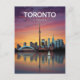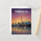 Experience the stunning skyline of Toronto, Canada, with this vibrant vintage-style postcard. The design captures the iconic CN Tower and downtown buildings reflecting beautifully in Lake Ontario, set against a dramatic, colorful sunset sky. This travel poster is perfect for lovers of Canadian cities, urban skylines, and spectacular sunset views. Ideal for sending greetings, keeping as a keepsake, or framing as modern wall art.
