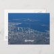Photo of downtown Toronto from the air as coming in for a landing on a plane from Europe. You can see the CN Tower, a major tourist attraction, Harborfront, and beautiful blue Lake Ontario with the Toronto Islands.
