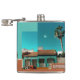 A colorful photo of a Spanish town with a traditional building, a crescent moon and a palm tree. Valencia, Alicante.