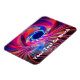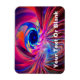 A bright, multi-colored (red, purple, blue) looping, rotational fractal image.