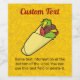Cartoon illustration of tortilla sandwich wrap. Junk food outline icons yellow pattern background. Custom text.