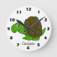 This tortoise design wall clock is a timekeeping device designed to hang on a wall, serving as both a functional tool and a decorative focal point for a room. Made from acrylic and features a pre-installed backside hanging slot for easy hanging and a non-ticking design. You can customise this wall clock with any text of your choice. Should you require any help with customising then contact us through the link on this page. Tortoise design wall clock