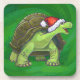 Tortoise in Santa Hat On Green Coaster
