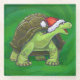 Tortoise in Santa Hat On Green Glass Coaster